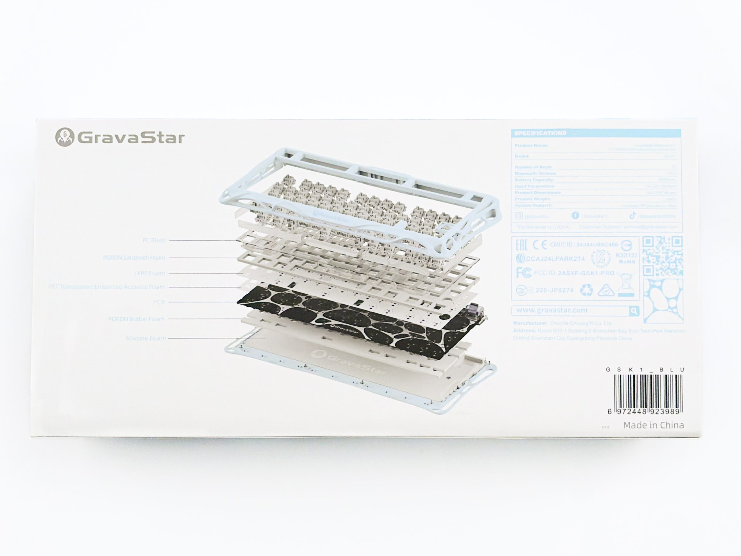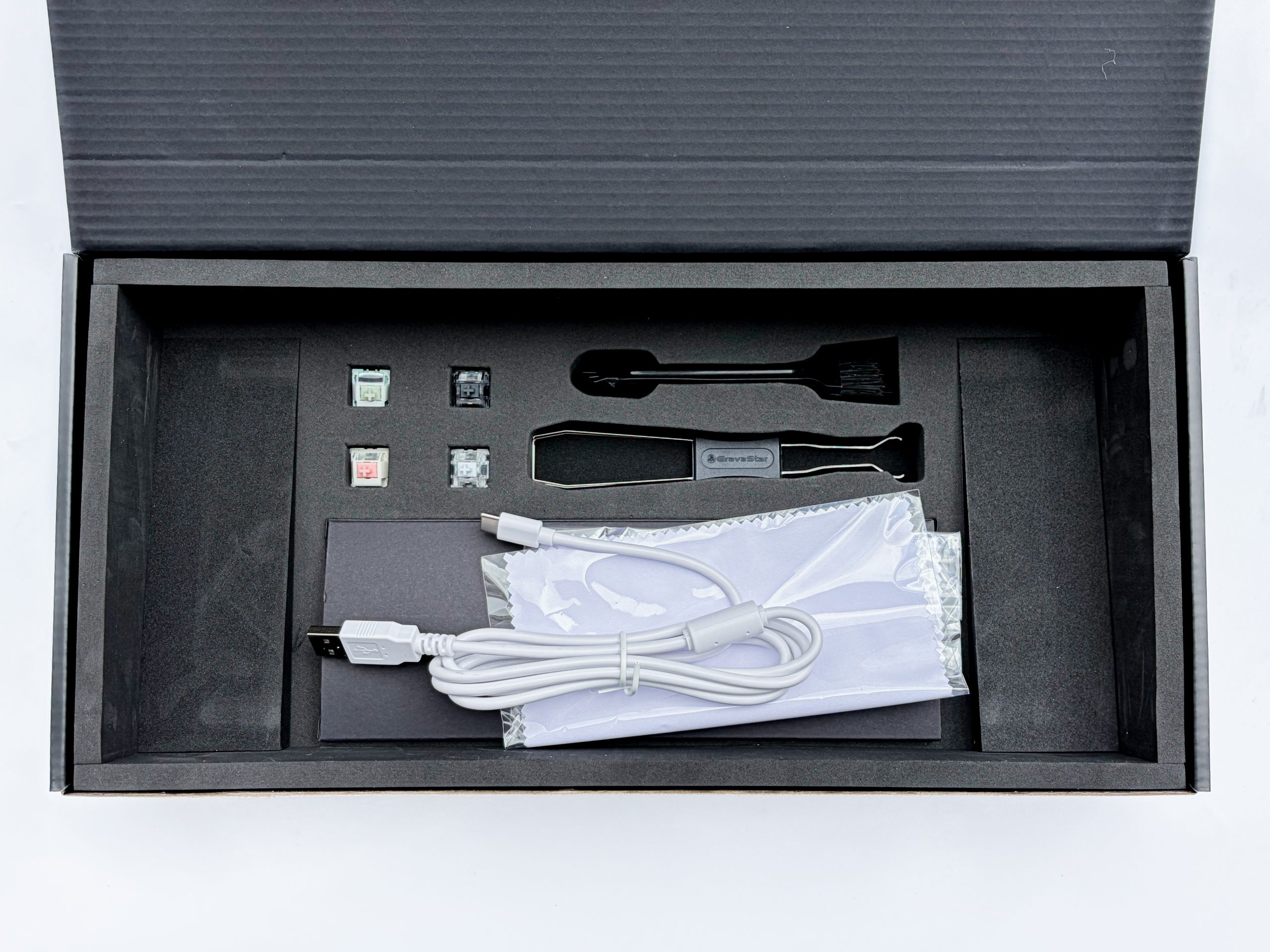 Nie zaszokuję Was jeśli powiem, że klawiatura wypchana po brzegi piankami i silikonem brzmi jak… klawiatura wypchana po brzegi piankami i silikonem. Stukanie jest zatem charakterystycznie wytłumione z jakiejkolwiek rezonancji czy innego pogłosu, a cieniutka warstwa pianki IXPE osadzonej bezpośrednio na powierzchni PCB skutecznie uwydatnia całość, podgłaśniając dźwięk i nadając mu lubianego przez młode pokolenie zabarwienia. Mercury K1 nie sprawdzi się zatem w otoczeniu, w którym stawiamy przede wszystkim na ciszę, ale za to jeżeli uwielbiacie te mitycznie thocki, clacki, creamy, marbly i inne te chwytliwe słówka bez realnego znaczenia, to będzie to niewątpliwie klawiatura dla Was. Mi nie przypadła akustycznie do gustu, bo mam jednak trochę konserwatywne podejście do brzmienia, ale w pełni rozumiem dlaczego komuś mogłoby to się spodobać. Szkoda natomiast, że skoro marka GravaStar potrafi dać nam tutaj opcję wyboru pomiędzy gasketem i top-mount’em, to już jednak przerasta ją umieszczenie pianek w osobnym kartoniku z opcją samodzielnego ich zamontowania wewnątrz obudowy. Może i to błahe, ale w mojej głowie im surowsza klawiatura domyślnie, tym lepiej – widzimy wtedy bowiem co nam w niej nie pasuje i jak brzmi bez modyfikowania oraz co możemy w niej zmienić zapewnionymi nam w komplecie narzędziami. Z drugiej strony większość klientów raczej nie ma zamiaru grzebać w środku i woli mieć pianki wrzucone przez producenta, a takie osoby jak ja mogą bez najmniejszego problemu je po prostu stamtąd usunąć. Cóż, case podobny do Dark Project Gamma.