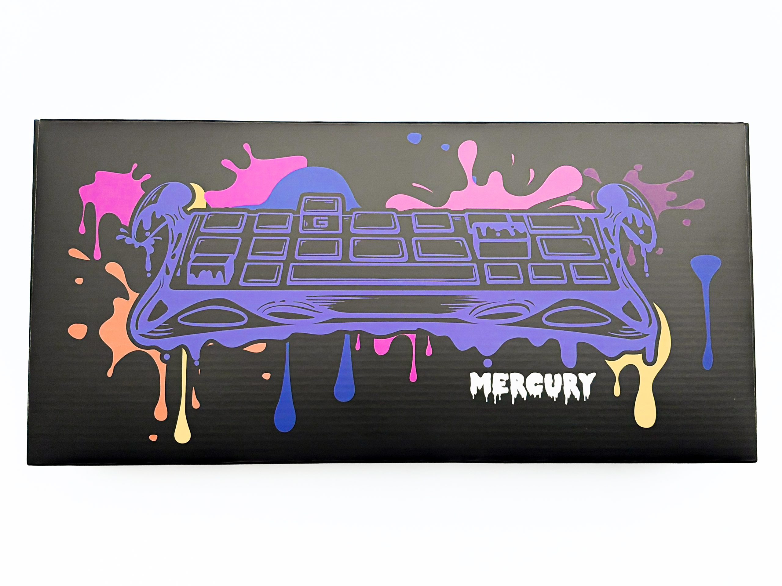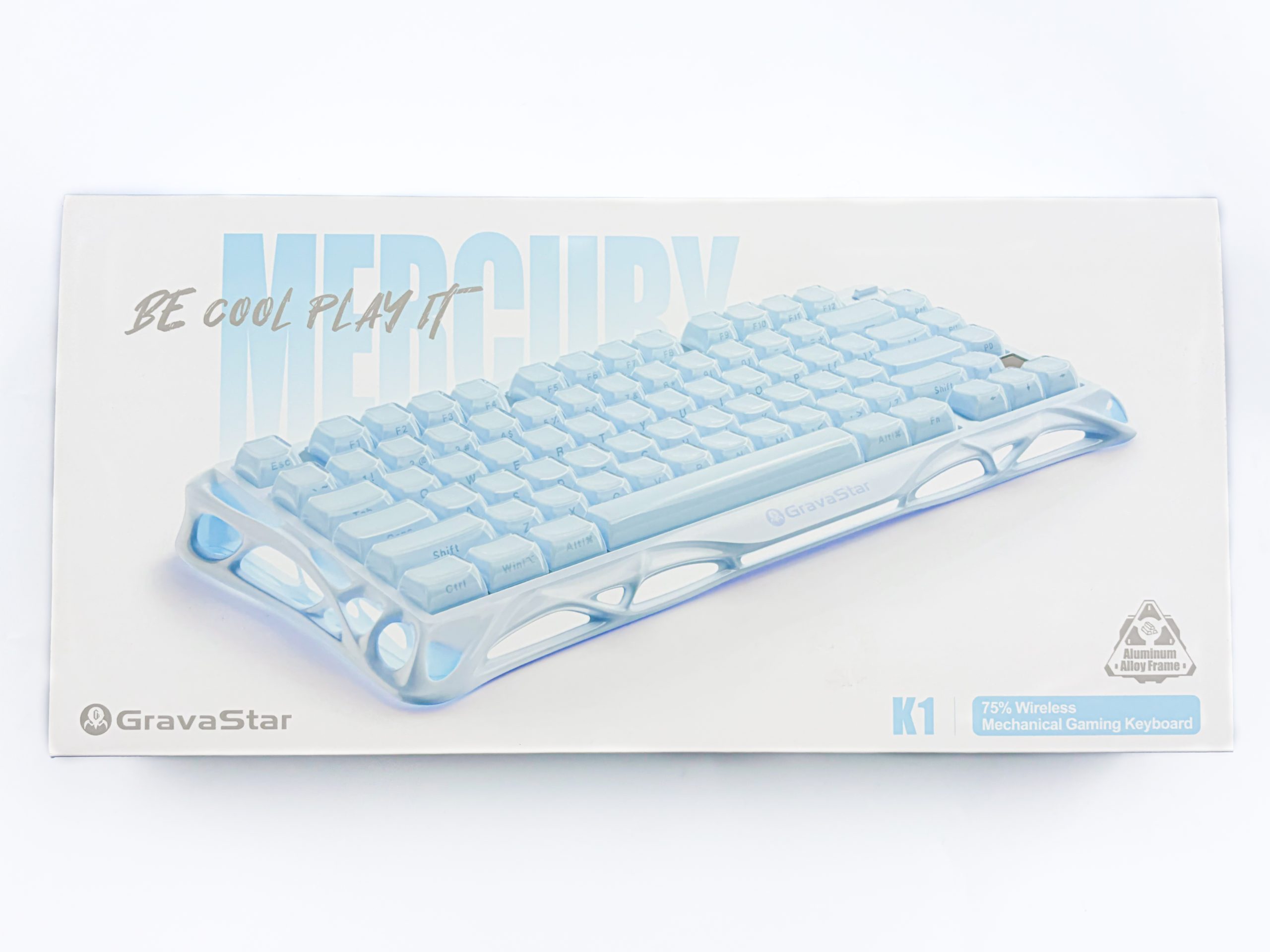 Jako że miałem opcję wyboru wariantu na testy, to padło na ten najmniej oczywisty – niebieski. Cieszy mnie zatem, że producent zadbał o szatę graficzną pudełka w zależności od wybranej opcji, albowiem kupując Ice Blue otrzymujemy czarny karton w niebieskiej koszulce, pełniącej rolę informatora. Na froncie znajdziemy rzecz jasna logo producenta, nazwę modelu i rysunek prezentujący drzemiącą w środku klawiaturę. Znalazł się tam także napis „Be Cool Play It” i wzmianka o wykonaniu ramy z aluminium. Na rewersie producent zamieścił z kolei tak zwany exploded view urządzenia, dzięki któremu możemy zajrzeć do jego wnętrza bez samodzielnego otwierania całości. Tuż obok widnieje także tabelka ze specyfikacją, z której wyciągniemy chociażby masę produktu czy pojemność akumulatora. Ciekawostką jest także samo czarne pudełko, które jak się okazuje nie jest w całości jednokolorowe, a zamiast tego dzierży barwny nadruk prawdopodobnie będący czymś w stylu znaku rozpoznawczego serii Mercury.