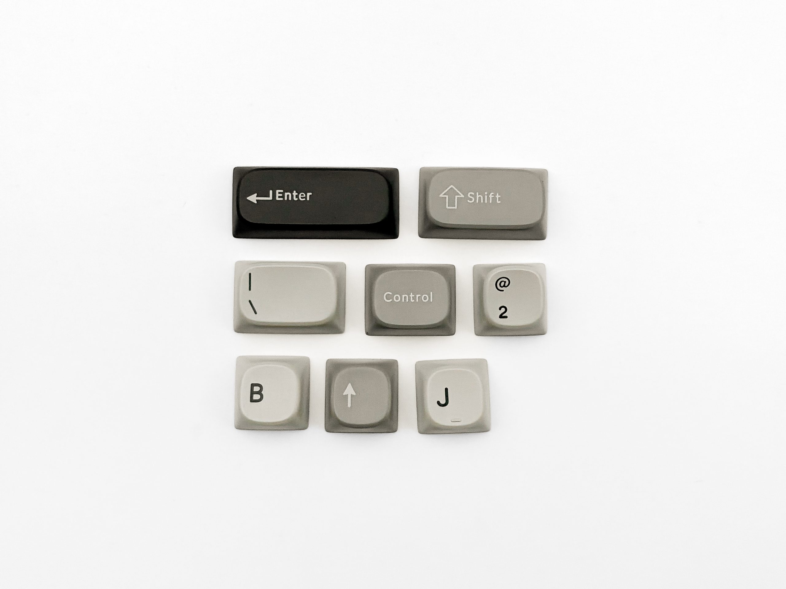 Metody produkcyjnej i tworzywa się pewnie spodziewacie, bo kto zdecydowałby się w tych czasach zrobić keycapy inaczej od wszystkich, ale z obowiązku wspomnę co wybrał x-kom w swojej najnowszej klawiaturce: double-shot i PBT. Tekstura ich wykończenia jest zaś gładka, jak w moich ulubionych XMI czy JC Studio, ale w charakterystycznie suchy sposób – jak na ten plastik przystało. Kolorystyka pasuje z kolei do całej reszty, to znaczy alfanumeryki są w odcieniu beżu tym samym co korpus, modyfikatory w lekko zbyt szarym, lecz kontrastowym, kolorze, a domyślne akcenty to ich przyciemniona, grafitowa wręcz, wersja. Legendy są odwrotnością, to znaczy na alfanumerykach są ciemnoszare, a na modach i akcentach beżowe. Gratisowo dostajemy rzecz jasna wspomniane wcześniej pomarańczowe akcenty, które może i nie pasują tutaj idealnie, ale dodają trochę życia tej jakże nudnej do bólu (pod kątem wizualnym) klawiaturze. Osobiście korzystałem jednak z Sanshu na domyślnych nakładkach, bo jakoś nie potrafiłem połączyć w swojej głowie beżu z pomarańczem, tak aby jeden pasował do drugiego – choć nie da się ukryć, że nie ma chyba lepszego akcentu w spektrum znanych naszym zmysłom barw, który jednocześnie będzie choć minimalnie zbliżony do reszty stylistyki klawiatury i będzie się rzucał w oczy.